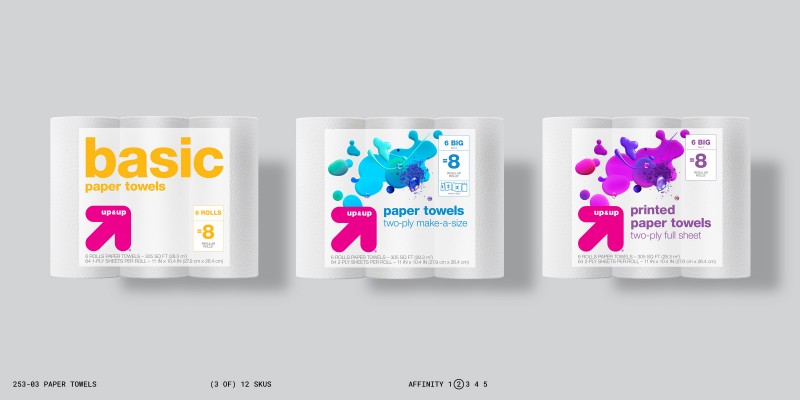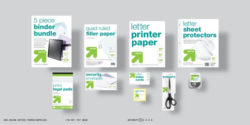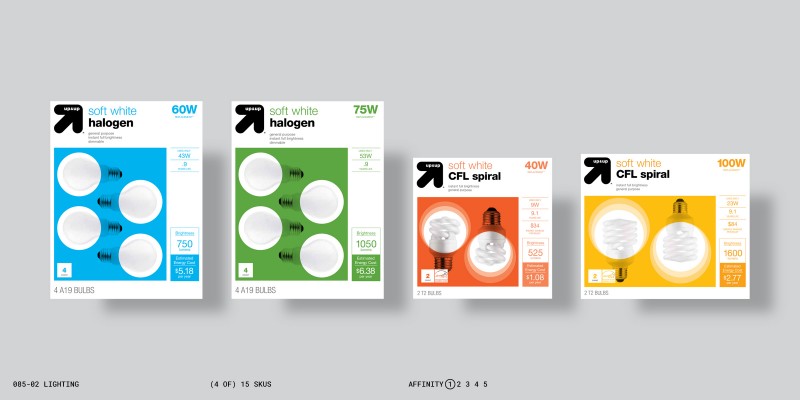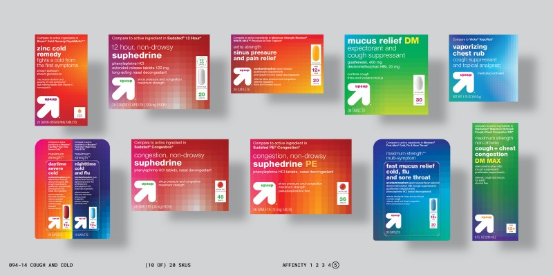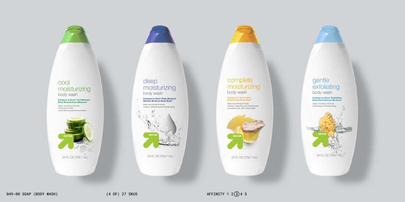 This change in approach required a shift in the brand’s priorities, and a fundamental change in the design process. This new approach guided designers toward informed objective decisions, and also allowed them to make more effective subjective choices—all in varying degrees of affinity to other brands based on the marketing objectives of individual up&up products.