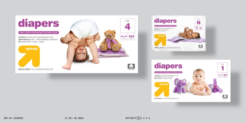 This change in approach required a shift in the brand’s priorities, and a fundamental change in the design process. This new approach guided designers toward informed objective decisions, and also allowed them to make more effective subjective choices—all in varying degrees of affinity to other brands based on the marketing objectives of individual up&up products.